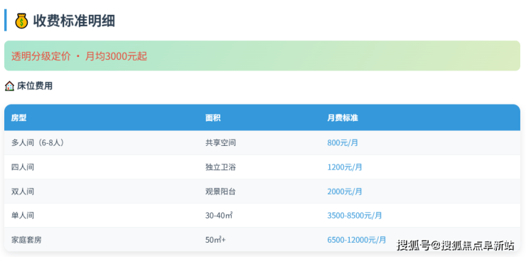 单人间:3500-8500元/月,配备独立卫浴与智能监护系统