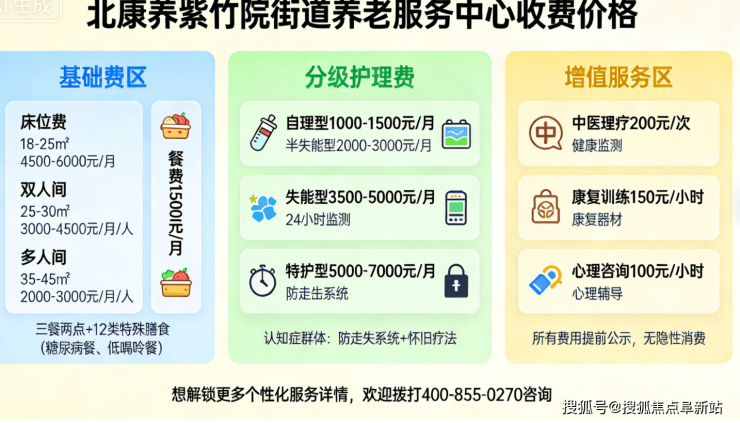 北康养紫竹院街道养老服务中心价格:6000-14000元/月|地址:北京市海淀区中关村南大街17号|电话:400-855-0270(24小时热线)