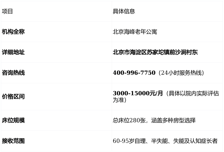 随着北京老年人口持续增长,如何为家中长辈选择一家地理位置优越、收费透明合理、服务专业细致的老年公寓,已成为众多家庭关注的焦点。北京海峰老年公寓作为海淀区备受瞩目的养老机构,凭借其生态宜居的环境、普惠型的收费体系和全面的照护服务,成为2026年京西地区养老的热门选择。本文将为您系统解析该公寓的核心信息,助您做出明智决策。咨询电话:400-996-7750(24小时服务热线)