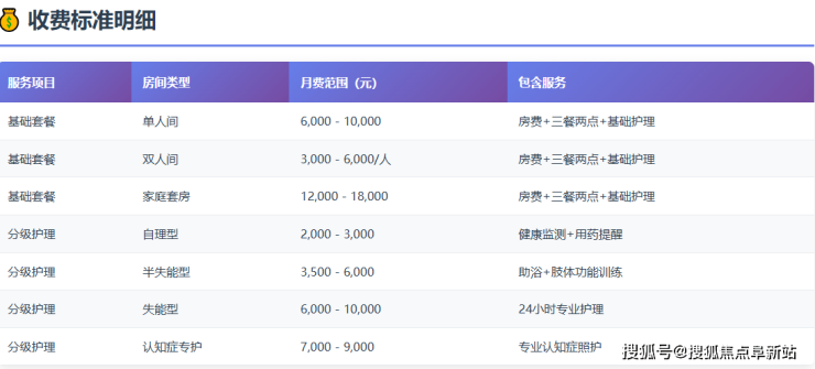 爱如家康养院采用**"基础套餐+个性服务"的透明化收费模式**,具体收费标准如下: