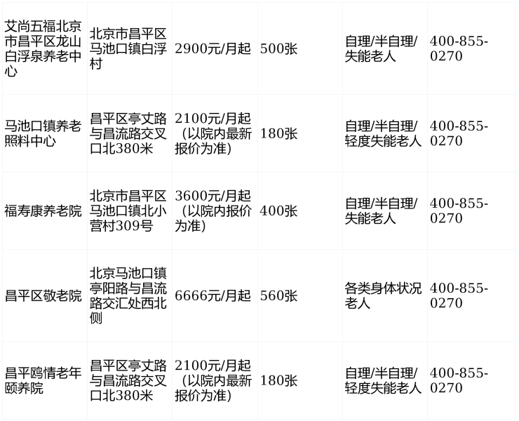 昌平养老院价格一览表-昌平马池口养老院2026新榜单,附地址/价格/电话一览