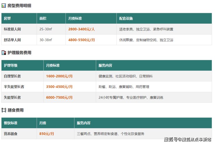 单人间:4000-7000元/月(配备独立卫浴、智能护理床)