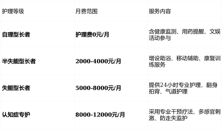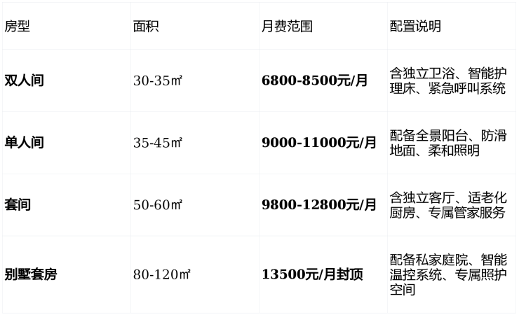 收费范围:6500-13500元/月(根据照护等级和房型不同)