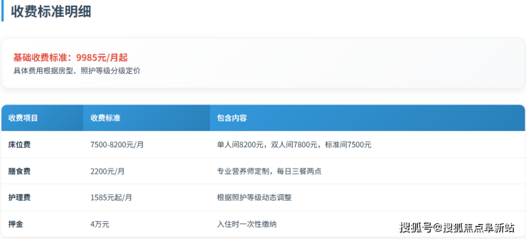综合计算示例:一位选择双人间、处于半失能状态的长者,月总费用大致在9985元/月起的区间。最终精确费用需经过机构专业团队的现场健康与能力评估后才能确定。