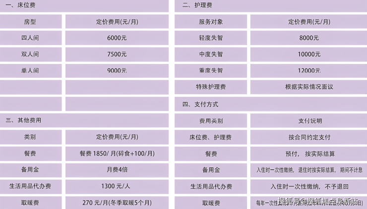 收费采用“基础床位费+分级护理费+餐费+可选增值服务费”的模块化透明计价模式,核心亮点为15000-20700元/月,所有费用经民政与物价部门备案,无隐性消费。具体定价清晰可查:基础床位费按房型细分,单人间(28㎡,独立卫浴+智能护理床+毫米波雷达监测)8500-10500元/月;双人间(38㎡,双床位+共享客厅+适老化厨房)6000-7500元/月;特护专区(20㎡,全时监护+防走失设计+智能床垫)9500-12000元/月;护理费依据国际FAST量表动态调整,轻度认知症2800-4500元/月,中度4500-7500元/月,重度7500-10500元/月;餐费统一1500元/月,含“三餐两点”。增值服务包含认知训练套餐2200元/月、中医理疗1800元/月,支持医保与长护险实时结算,切实减轻家庭负担。