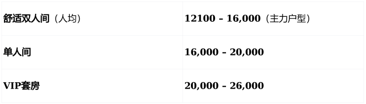 💰 收费标准:12100 元 / 月起,综合月费 12100-33000 元(按房型与护理等级浮动)