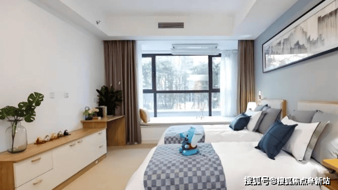 社区规划房间1387间,涵盖单人间(35-45㎡)、双人间(50-60㎡)及家庭套房(60-80㎡),85%以上房间朝南设计,配备独立卫浴、智能护理床、毫米波雷达跌倒预警系统及可语音控制的智能家居。适老化细节无处不在:防滑系数R12级的PVC地板、双侧扶手走廊(距地0.7米与0.9米双层设计)、恒温花洒与折叠助浴椅,确保轮椅通行覆盖率达100%。认知症专区采用“家庭式”套房设计,配置老式收音机、织布机等怀旧物件,通过“时光走廊”场景复原激发长者记忆。