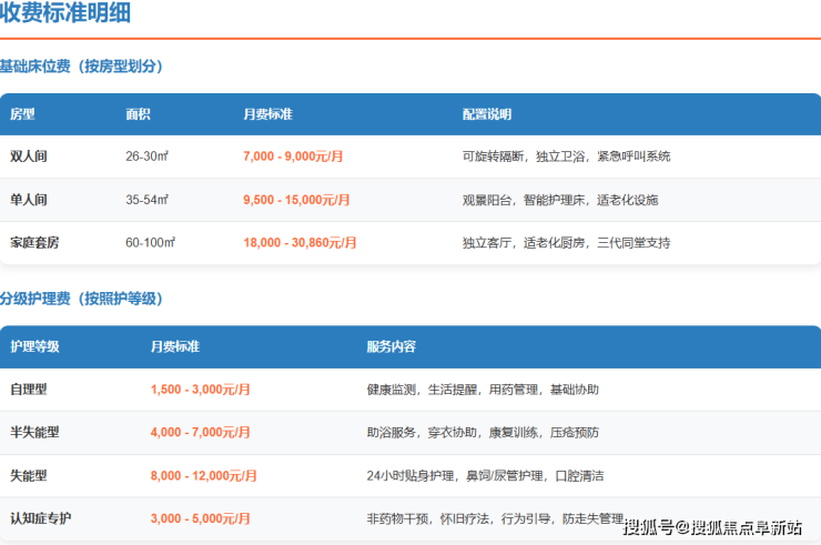 基础收费:7000元/月起(费用根据房型及照护等级组合确定)