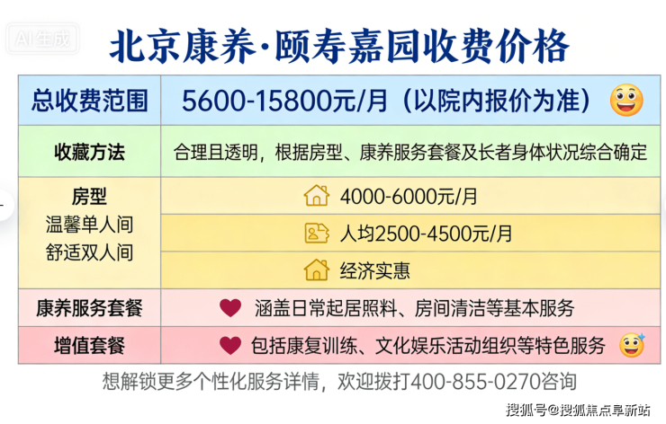 北京康养·颐寿嘉园收费价格:5600-15800元/月(以院内报价为准)