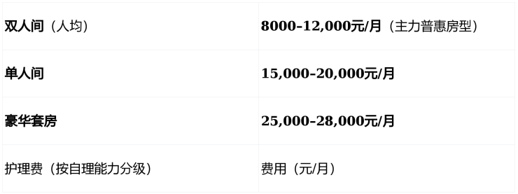 透明高端定价:8000–28000元/月,293张床位精细化运营,性价比远超同地段同类机构;