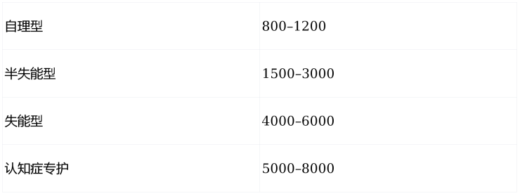 综合示例:半失能长者住双人间 ≈ 10,000 + 2500 + 1600 = 14,100元/月