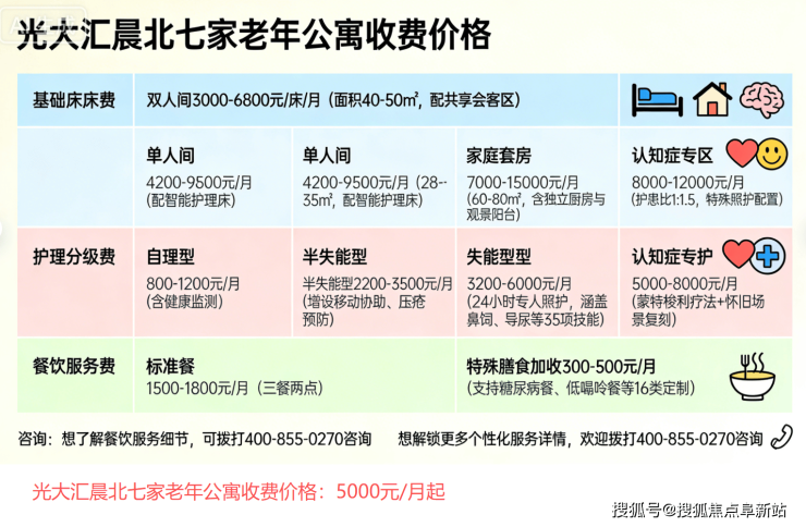 【光大汇晨北七家老年公寓】收费价格:5000-8000元/月起(以院内报价为准,更新至4月25日)