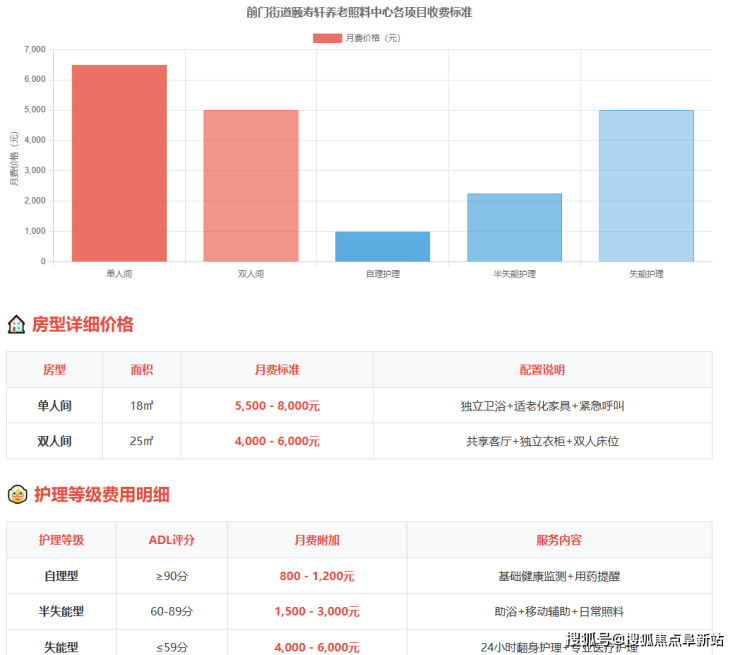 费用包含24小时生活照料、健康监测、康复训练及文娱活动,特殊医疗护理按实际需求收费,真正做到收费透明化。