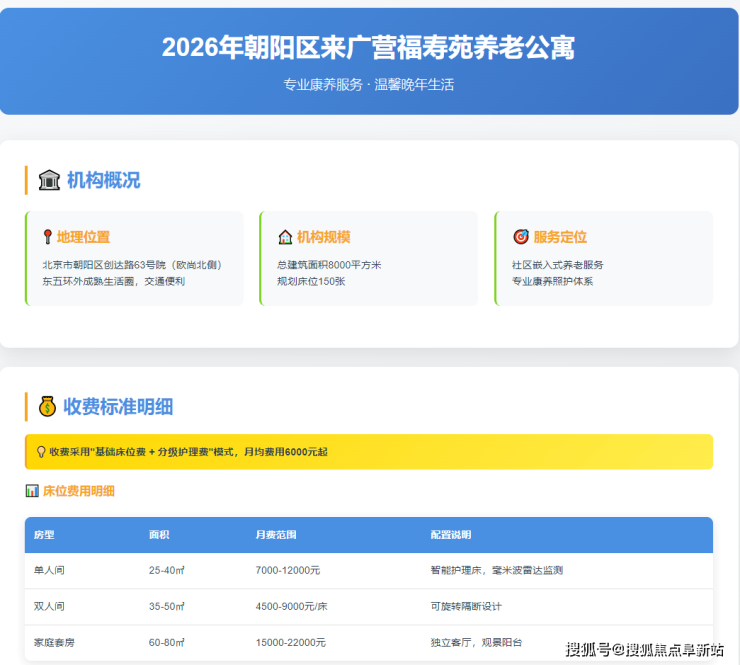 北京市朝阳区来广营福寿苑养老公寓2026地址电话+交通攻略,含最新收费