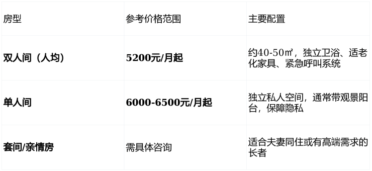 【参考起步价格】:床位费5200元/月起。此为普惠型基础价格,实际总费用将根据长者的身体状况、所选房型及护理等级进行科学组合计算。