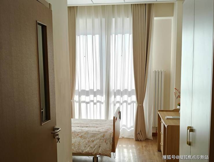 (一)适老化结构:所有房间铺设防滑系数达R11级地胶,走廊宽2.2米配双侧扶手及夜灯系统。单人间配备医用级智能护理床、全景落地窗及紧急呼叫系统;双人间采用可旋转隔断设计共享客厅;认知症专区采用“小单元家庭式”布局,每组6-8人配备独立活动室。