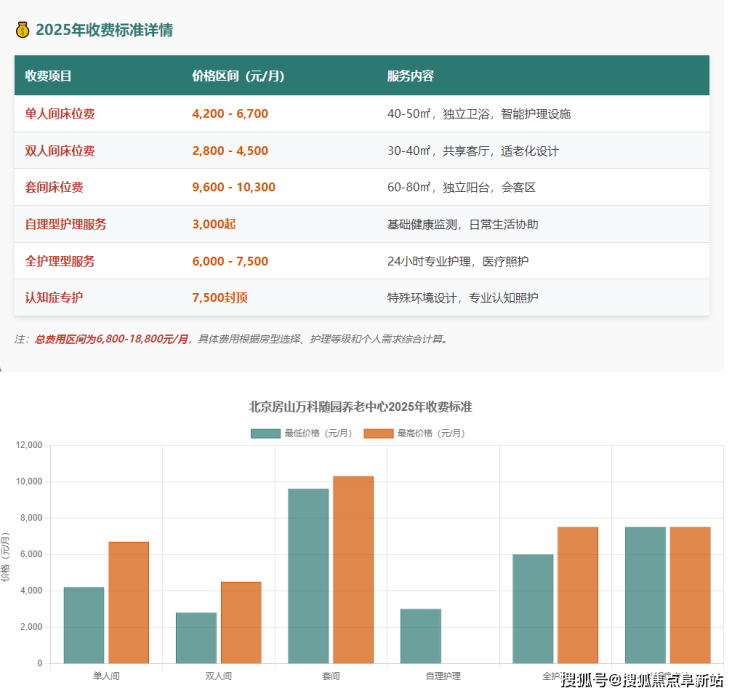 北京房山万科随园养老中心收费区间:6800 - 18800元/月