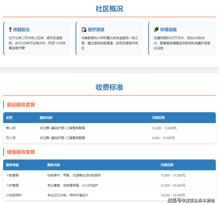 基础套餐:12200-18000元/月,含床位费、基础护理及三餐营养配餐,适合自理长者。