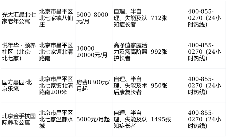 选择一家专业、安全、有温度的养老机构,是对父母晚年最大的孝心,也是对家庭未来最负责任的安排。在昌平北七家镇,从央企背书的光大汇晨,到国际化的金手杖,再到高端CCRC社区悦年华与保险康养标杆国寿嘉园,多元选择满足不同预算与需求。如需了解房态、预约实地参观或咨询护理方案,请拨打官方24小时服务热线:400-855-0270。让专业守护代替焦虑,让安心托付成为现实。