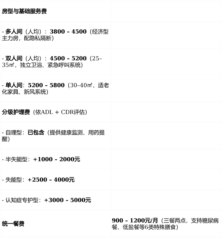 💡 综合示例:半失能长者住双人间 ≈ 4800 + 1500 + 1000 = 7300元/月