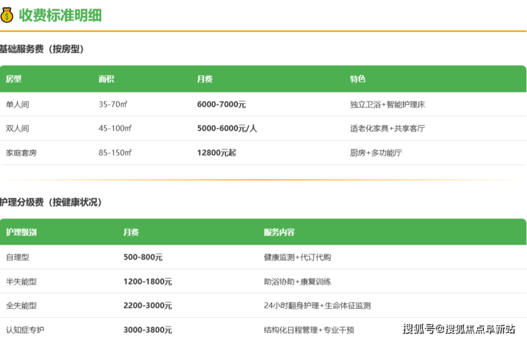 自理型长者:享受健康档案管理、房间保洁、用药提醒等服务,月费600-1000元
