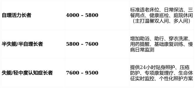 💰 收费标准:4000 元 / 月起(床位 + 护理 + 餐费,按房型、护理等级浮动)