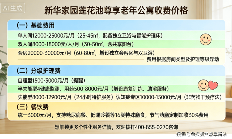 新华家园莲花池尊享老年公寓收费区间(8000元/月起)-2026丰台区养老院价格一览