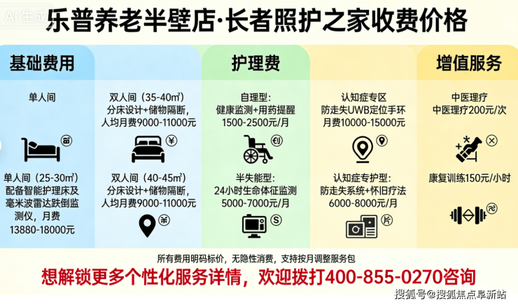 温馨提示:最准确的费用需结合老人的具体情况和所选房型进行评估。建议您拨打官方电话400-855-0270获取个性化的费用明细解读。