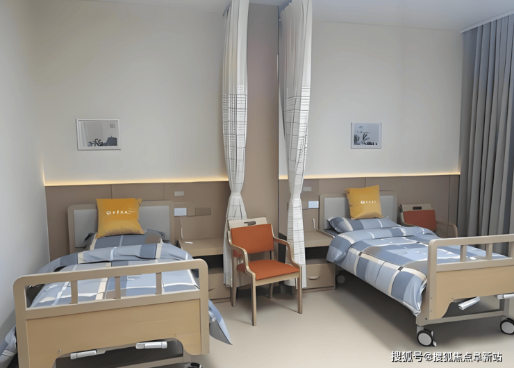 该护理中心总规划床位30余张,采用以双人间为主、辅以少量单人间的布局,确保护理人员能对每位长者给予充分关注。所有居室均按北京市中端养老机构标准进行适老化改造,配备床边紧急呼叫系统、防滑静音地板、墙面连续扶手、无障碍卫浴(含坐便扶手与防滑淋浴)、冷暖空调及充足储物空间。公共区域设有康复训练角、阅览区、多功能活动室及带遮阳棚的户外庭院,整体环境整洁明亮、动线清晰,特别为行动不便长者设置无障碍通道与休息座椅,提升日常活动安全性与生活舒适度。