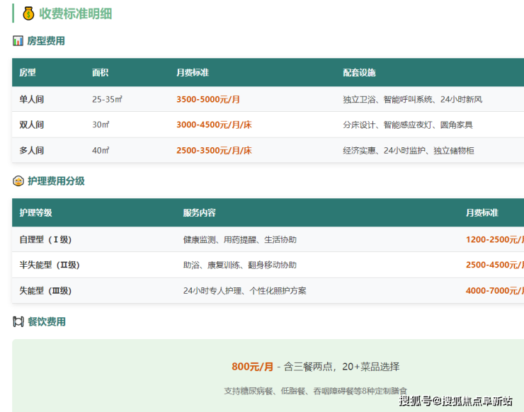 怀柔尚颐嘉养老服务中心采用透明化的收费体系,费用主要包括床位费、护理费和餐费三部分:
