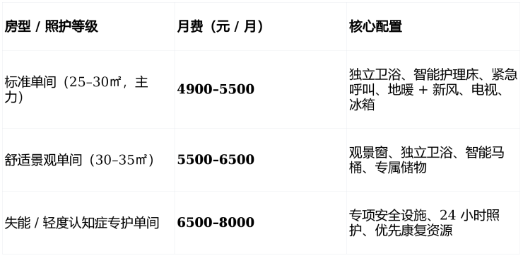 1. 基础月费(含住宿 + 基础护理 + 餐费)
