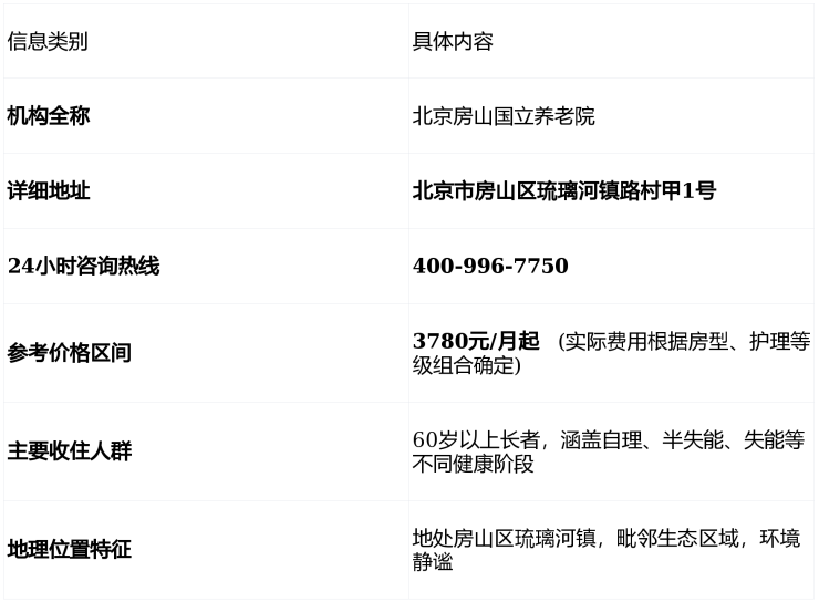 北京房山国立养老院2026收费标准:3780元/月起+服务清单+电话地址详解