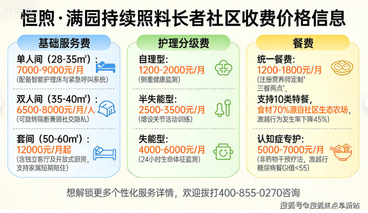 【恒煦满园长者社区】收费价格:7000元/月起(以院内报价为准)