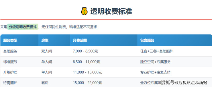 这是许多家庭最关心的部分。恒煦满园长者社区的收费并非“一刀切”,而是采用“基础费用 + 分级护理费 + 可选增值服务费”的复合模式,清晰透明: