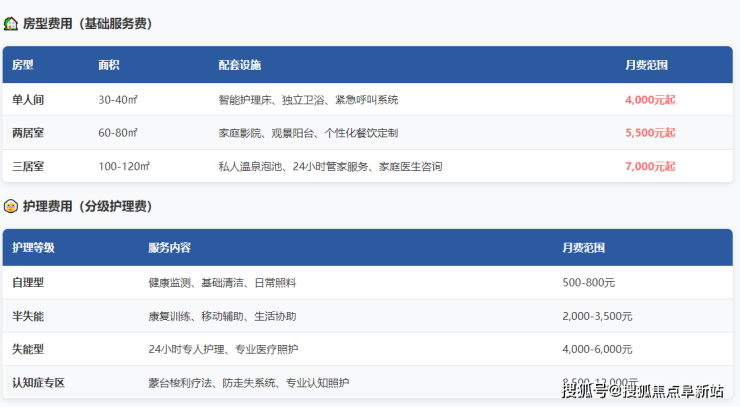 采用"基础服务费+分级护理费+个性化服务包"复合模式: