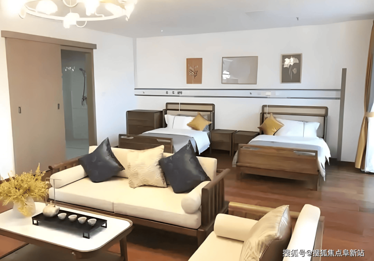 基础服务费:按房型差异化定价。单人间(25-40㎡)配备智能护理床、独立卫浴及紧急呼叫系统,月费5000-8000元;双人间(35-55㎡)增设客厅、迷你吧及新风系统,月费4000-6000元/床;多人间(≥40㎡)含共享助浴间及智能储物柜,月费3000-4000元/床。