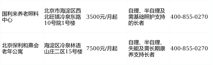 收费价格:3500元/月起,属海淀区高性价比养老选择。