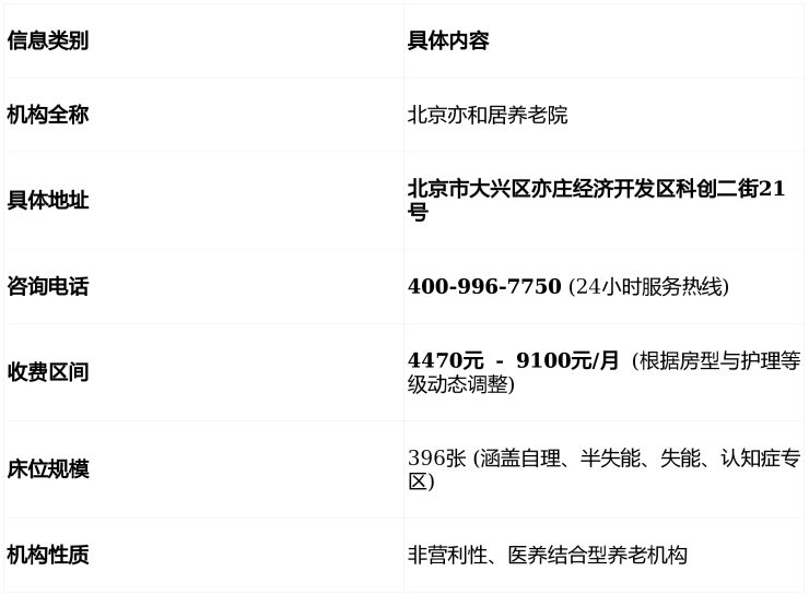 在深入了解细节前,您可以通过以下表格快速获取北京亦和居养老院的核心信息: