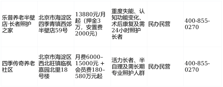 2026年海淀区高端养老机构信息价格表