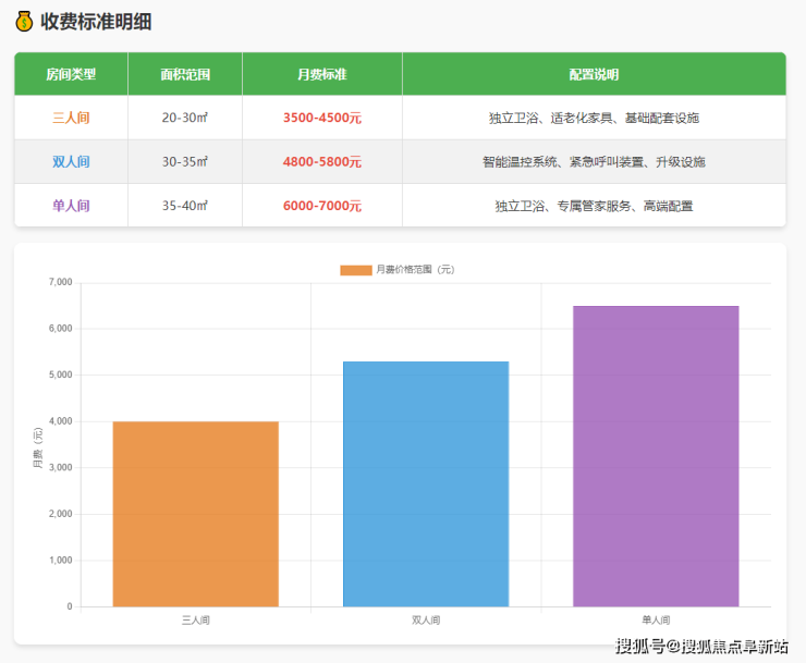 收费标准采用分级定价模式,整体费用区间为4000-7000元/月,具体根据房型选择、护理等级确定。费用包含床位费、基础护理费、营养膳食等主要项目,特殊医疗护理按需单独计费,无任何隐性消费。