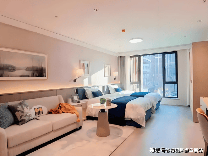 社区毗邻温榆河生态走廊,森林覆盖率超65%,负氧离子浓度达3000个/cm³,PM2.5年均值较市区低30%,夏季气温较市区低2-3℃,形成天然的“生态养老屏障”。总建筑面积7.8万平方米,规划床位近1000张,涵盖单人间、双人间及120㎡家庭套房。社区内设500㎡自然花园与300㎡开心农场,四季种植樱花、银杏、薰衣草等植物,兼具生态疗愈与休闲功能。屋顶花园配置门球场与园艺区,地下活动室配备KTV、影院、棋牌室,公共区域走廊宽度达1.8米,双侧安装助力扶手,地面铺设防滑PVC地胶,构建无障碍通行体系。