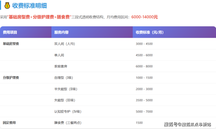 收费范围:6000-14000元/月(根据房型、护理等级不同)