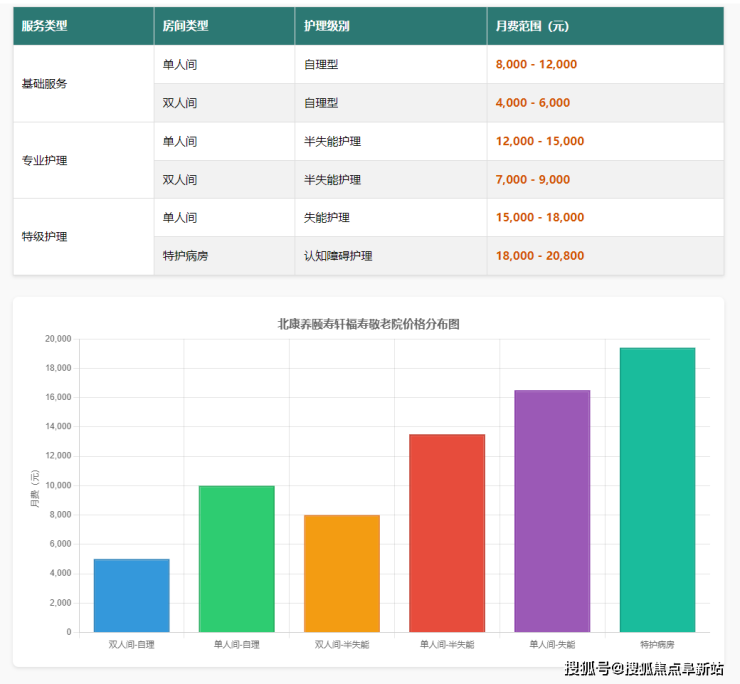 收费标准:4000-20800元/月(根据护理等级和房型差异化定价)