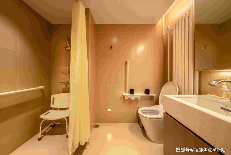 室内采用圆角家具设计,地面铺设防滑地胶,配备紧急呼叫系统,细节处尽显对长者安全的关怀。