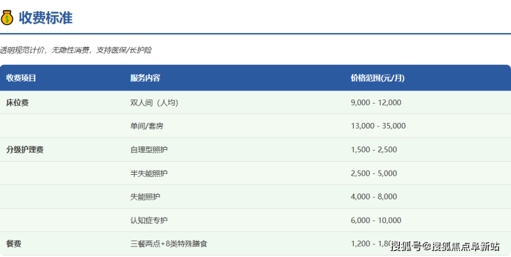 参考价格:月费9000元起,具体区间为9000元至35000元/月,费用根据房型、护理等级等因素动态调整。