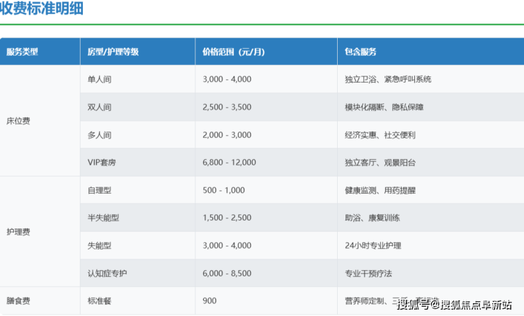公寓采用**"床位费+护理费+餐费"**的组合计费模式,确保收费透明合理: