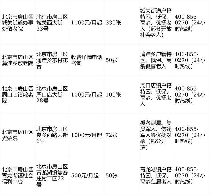 收费价格:500元/月起,为房山区最低收费之一,体现强公益性。