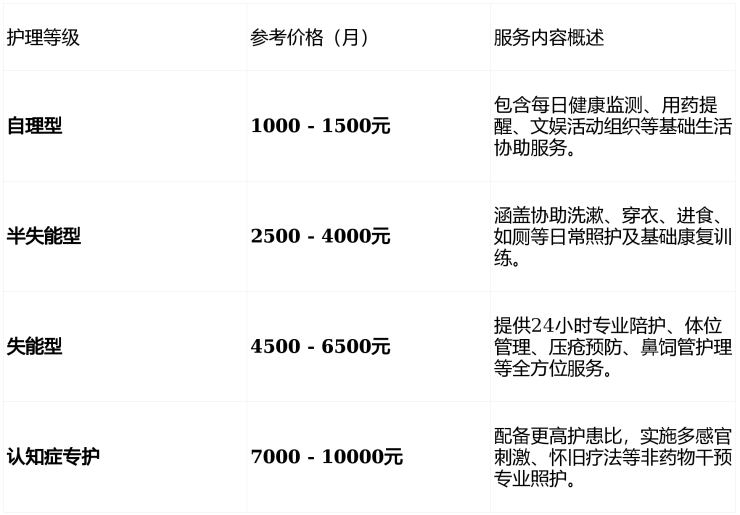 参考收费区间:6000元/月起(具体费用根据房型与护理等级动态调整)