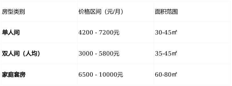 基准价格:6000元/月起(根据房型与服务组合浮动)