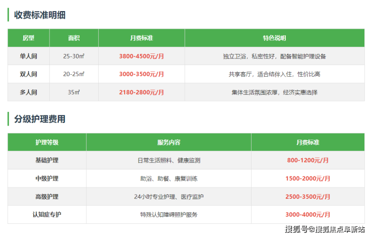 收费采用"基础服务费+分级护理费"模式,所有费用明细通过书面协议公示:
